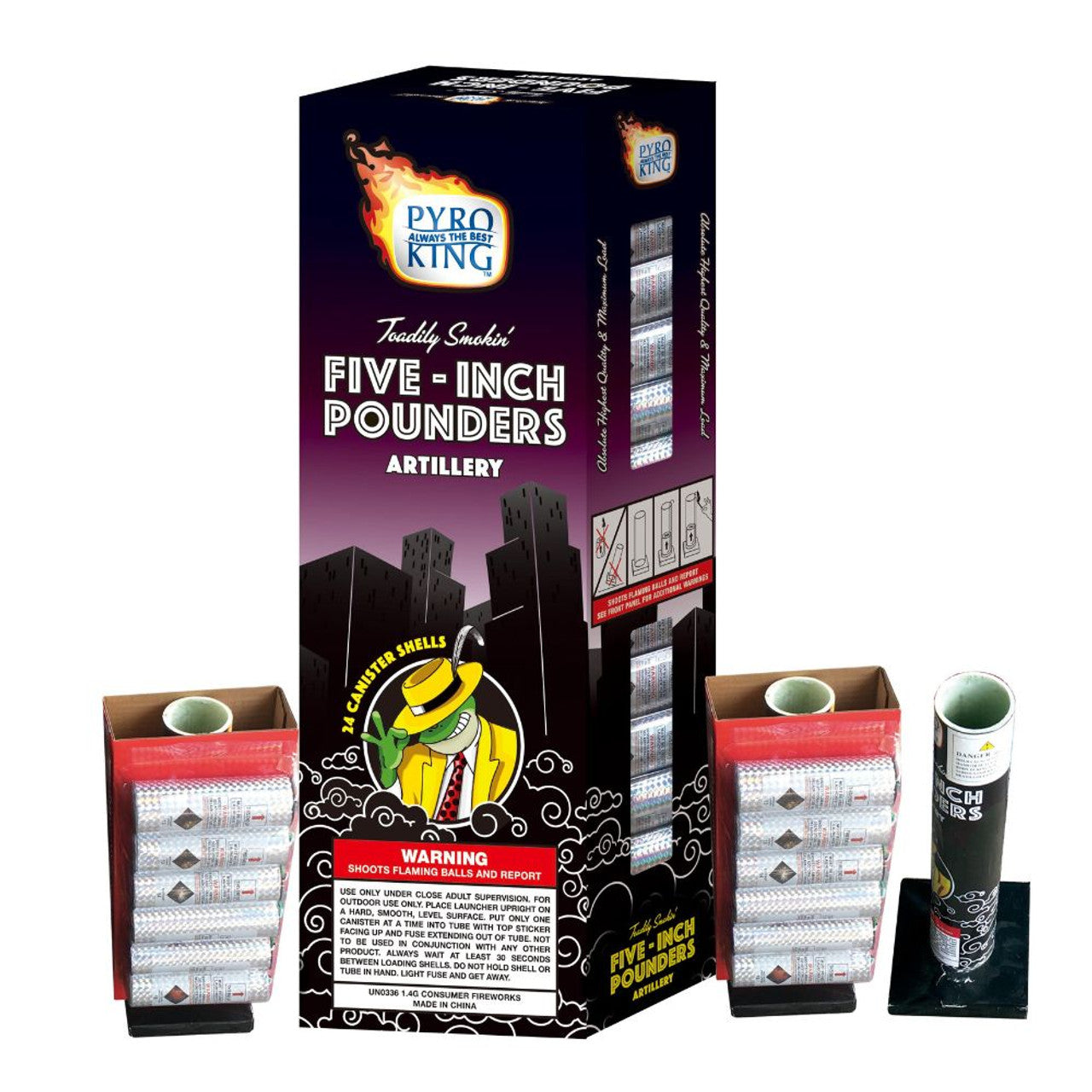 24 5" cannister shells packed with a variety of show stopping effects! Pyro King Always the best!